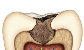 龋齿表面阶段、中龋、深龋治疗通过拔去受伤组织,以后补牙。